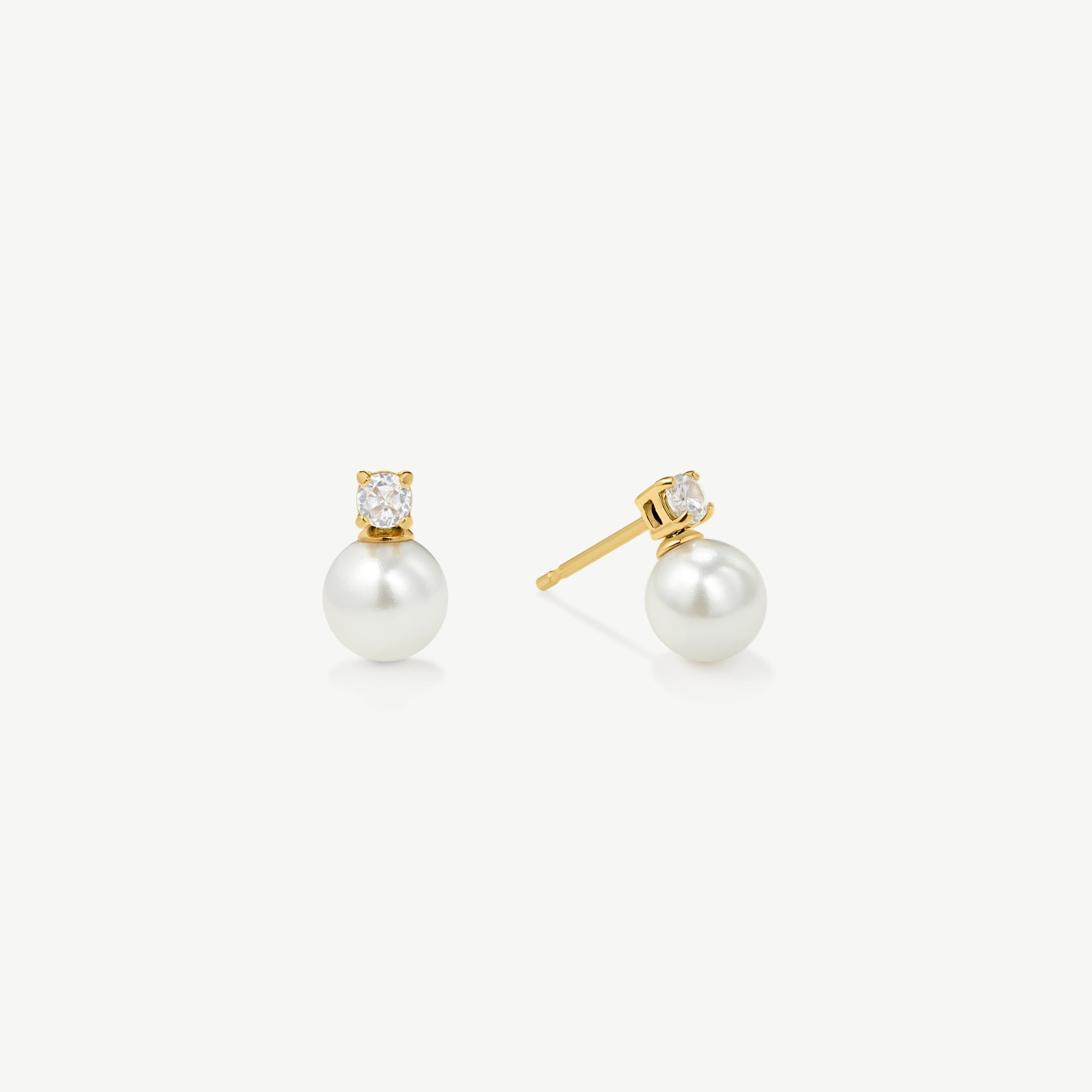 These stunning studs feature a sparkling cubic zirconia stone and delicate pearl drop design, effortlessly enhancing any bridal look.