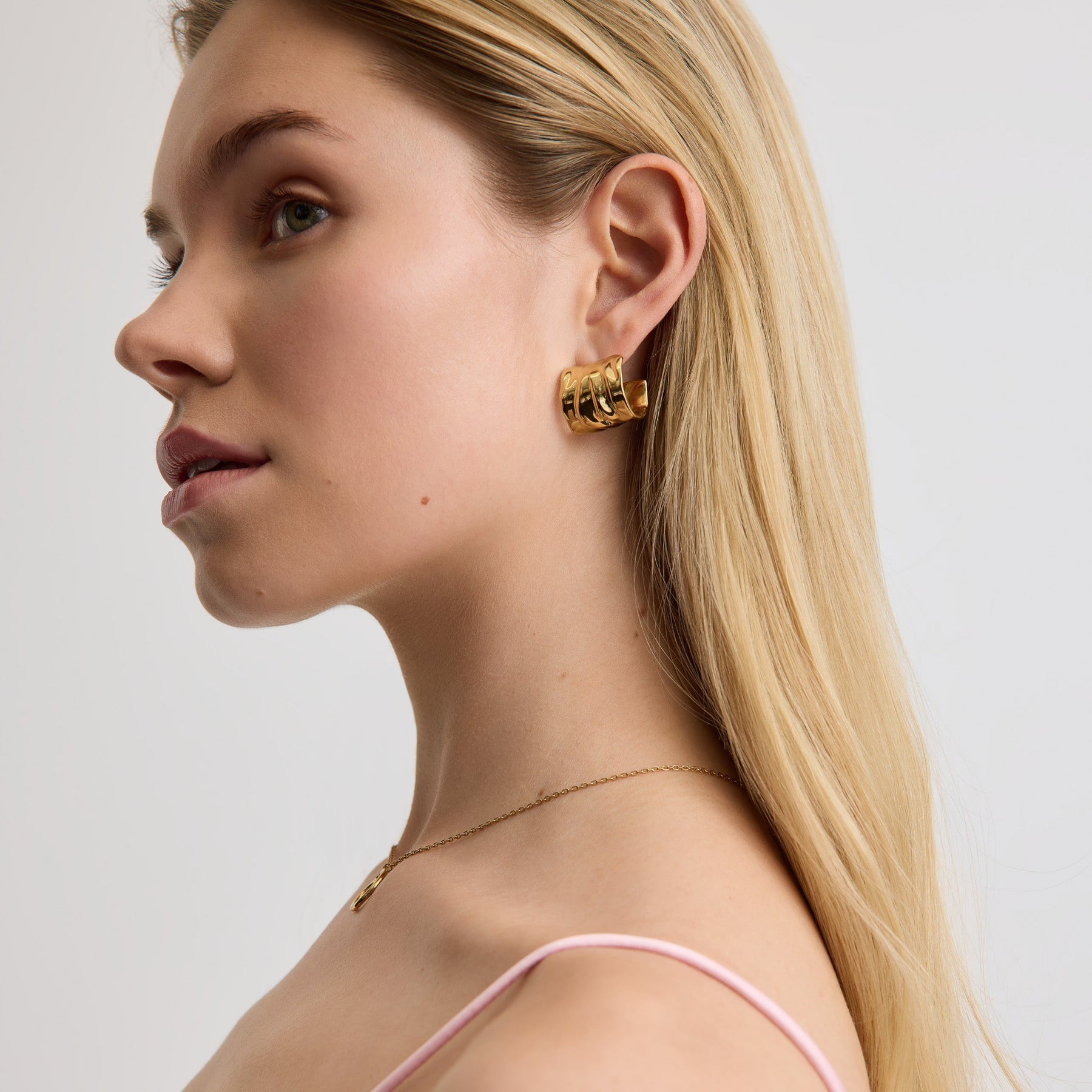 Details: Sculptural gold in full flow. Bold hoops made to turn heads.