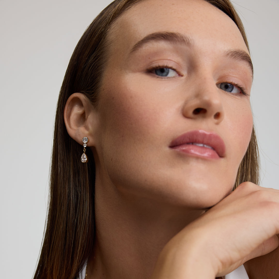 Elegant drop earrings accented with a pear shaped stones add effortless sophistication for any occasion.