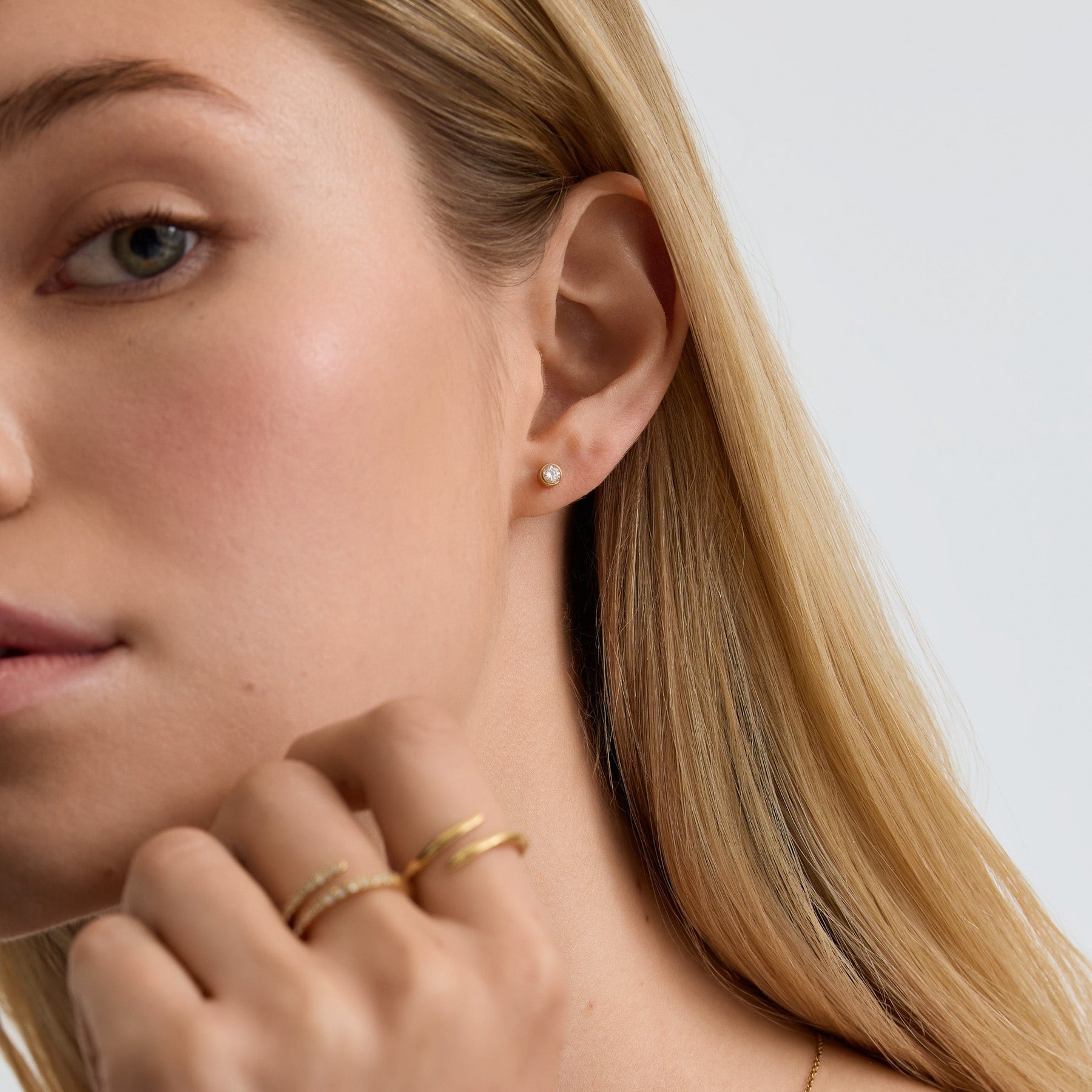 Details: Refined and understated bezel set lab grown diamonds for effortless, everyday sparkle.
