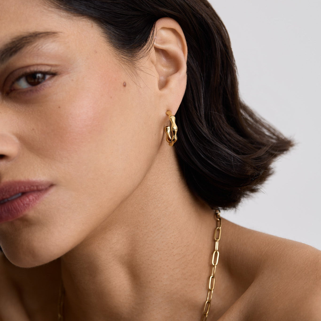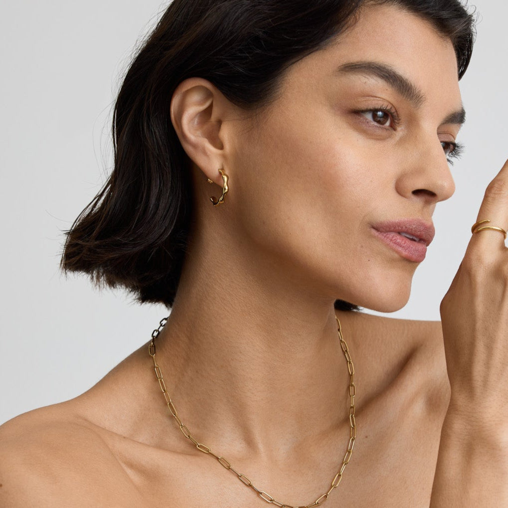 These elegant hoops feature a stunning, gold bamboo detail that adds a touch of sophistication to any outfit. Made with high-quality materials, you'll never have to take them off.
